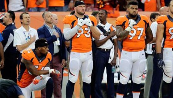 Denver LB Brandon Marshall Takes A Knee During Anthem