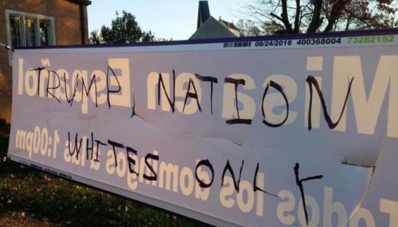 Confirmed reports from NBC News include: The words “Trump Nation, Whites Only” found written on the walls of the Episcopal Church of Our Saviour in Silver Spring, Md. on Sunday; A campus safety alert issued Sunday by the University of Michigan after a Muslim student told police a white male said he would “set her on fire,” if she didn’t remove her hijab; and a police investigation of graffiti reading “Make America White Again,” on the wall of a softball field in New York, which appeared just hours after Trump won the election.
