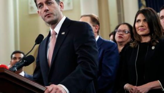 House Speaker Paul Ryan of Wis., left, speaks next to Rep. Kristi Noem, R-S.D., during a news conference announcing GOP tax legislation, Thursday, Nov. 2, 2017, on Capitol Hill in Washington. (AP Photo/Jacquelyn Martin)