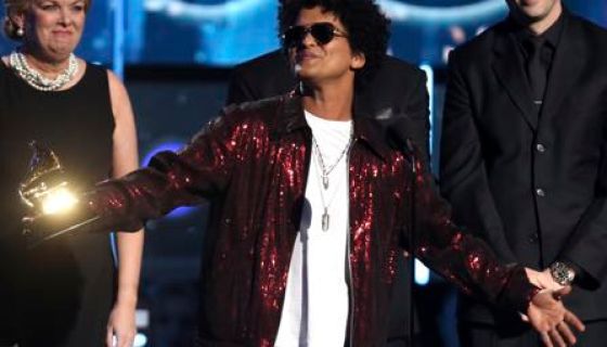 “Oh my God. Thank you guys so much. Wow,” said Mars. “I’d like to dedicate this award to (songwriters like Babyface, Teddy Riley Jimmy Jam and Terry Lewis).”