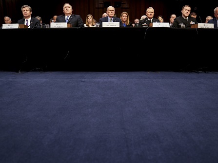 Coats and other top intelligence officials were appearing at a Senate intelligence committee hearing Tuesday to discuss their annual assessment of global threats facing the United States.