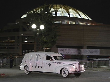 DETROIT (AP) — What began as a thin line swelled into a sea of sisterhood as hundreds of members of Delta Sigma Theta streamed into the rotunda of the Charles H. Wright Museum on Tuesday to pay tribute to the Queen of Soul, a member of the sorority.
