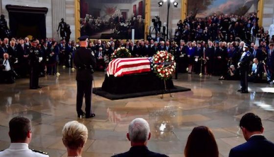 “It is only right that today, near the end of his long journey, John lies here, in this great hall, under this mighty dome, like other American heroes before him,” said Senate Majority Leader Mitch McConnell. “We thank God for giving this country John McCain.”