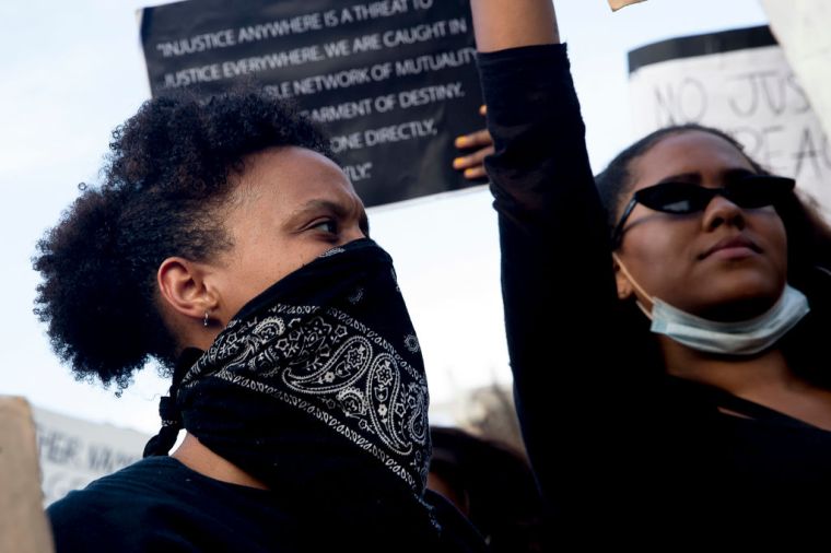 A Black woman is holding a placard against racism, during the massive solidarity protest against anti-black violence in the US and EU, that took place in Amsterdam, on June 1st. (Photo by Romy Arroyo Fernandez/NurPhoto via Getty Images) photography,horizontal,usa,adult,african-american ethnicity,women,african ethnicity,healthcare and medicine,europe,politics,us president,activist,large,social issues,violence,netherlands,protest,racism,protestor,murder,political party,slavery,prejudice,placard,amsterdam,politics and government,police brutality,coronavirus,infectious disease,black civil rights,racial tensions,black lives matter,i can’t breathe,human rights,protest against excessive police force,alt-right,donald trump – us president,north holland,social movement,right-wing politics,covid-19,pandemic – illness,protective face mask,george floyd,anti-quarantine protest,dam square