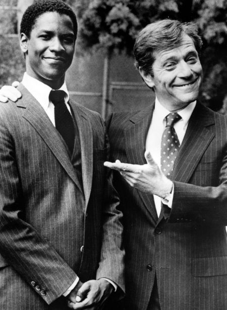 A half length portrait of actors Denzel Washington and George Segal starring in the movie ‘Carbon Copy’ about a white man’s relationship with his long lost black son, September 3, 1985. (Photo by Afro American Newspapers/Gado/Getty Images) vertical,celebrities,people,arts culture and entertainment,usa,adult,waist up,portrait,actor,movie,males,men,north america,1980-1989,son,black and white,archival,denzel washington,human interest,length,photograph,george segal – actor