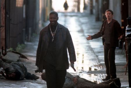 American actor Denzel Washington on the set of Man of Fire, directed and produced by Tony Scott. (Photo by Twentieth Century Fox/Regency/Sunset Boulevard/Corbis via Getty Images) photography,people,one person,arts culture and entertainment,horizontal,actor,movie,city of los angeles,males,archival,denzel washington,performing arts event,film set,movie still