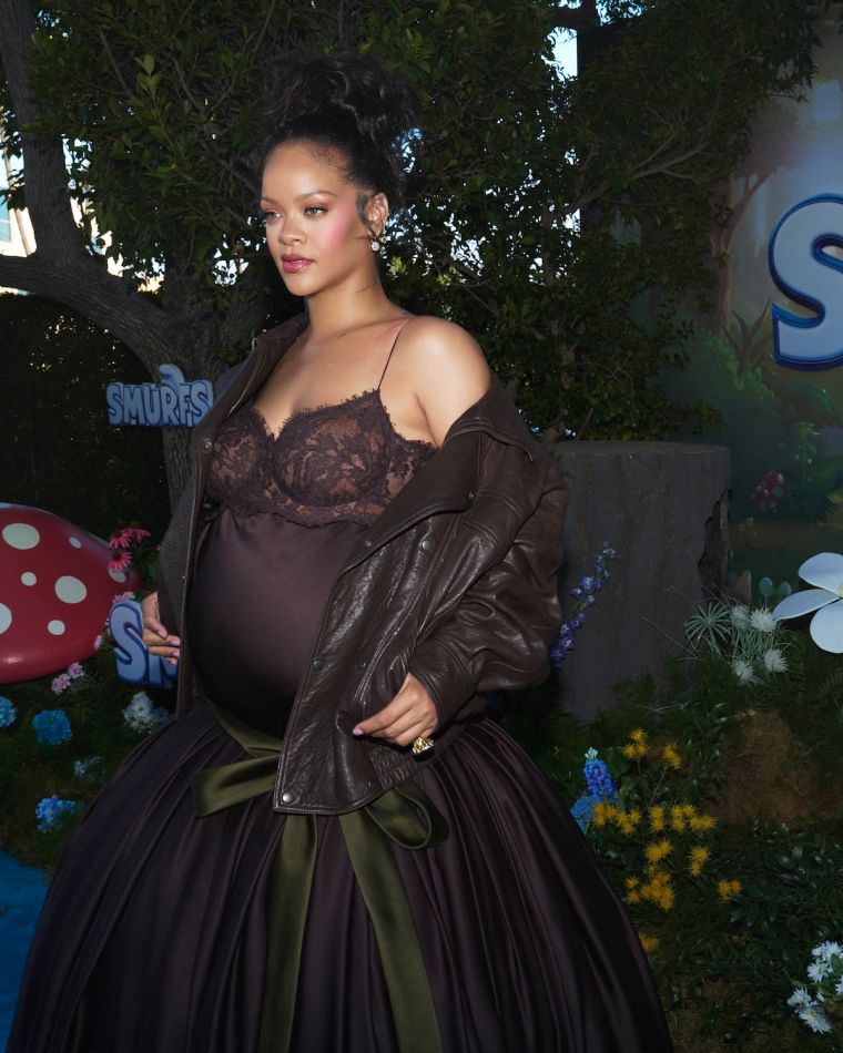 Smurfs world premiere in Brussels on June 28, where she wore an ethereal baby-blue Chanel gown—crafted over 840 hours—for the red carpet alongside A$AP Rocky. The couple confirmed they’re expecting a girl, solidifying the “R” naming tradition with another daughter on the way.
