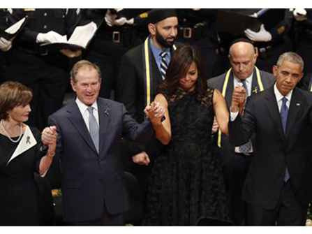 DALLAS (AP) — Former President George W. Bush‘s awkward arm swaying in sync with a choir’s singing during a memorial service for the five police officers slain in Dallas last week is drawing mockery and criticism on social media. Bush smiled, swayed and moved his arms up and down while holding the hands of wife […]